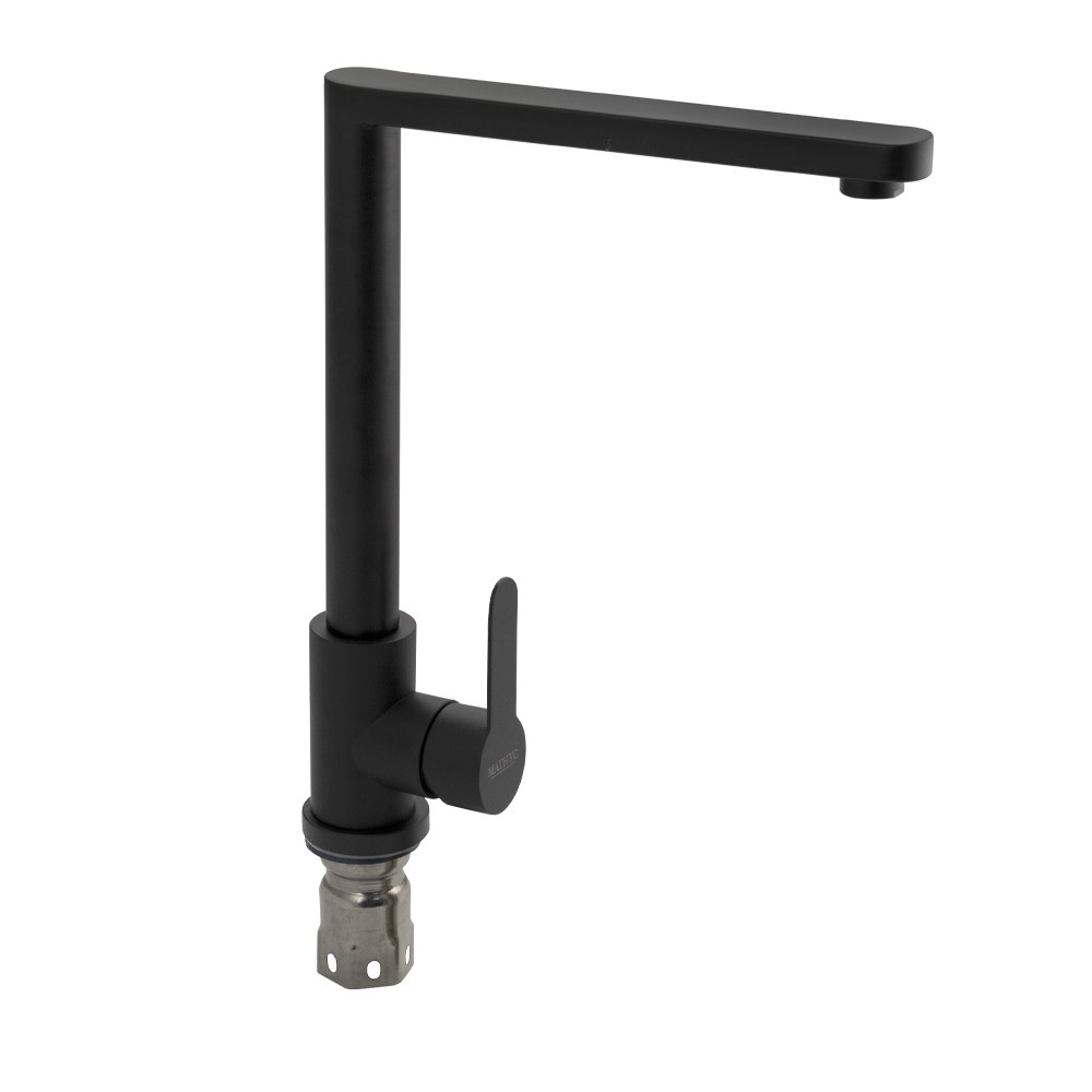 Смеситель кухонный ЧЁРНЫЙ, Г-образный гусак, из нержавеющей стали марки 304