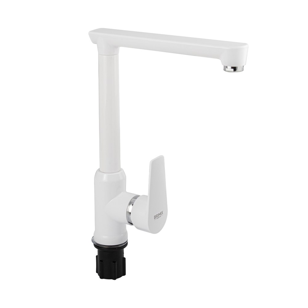 Смеситель на кухню, боковой Г-образный излив, шаровый из высокопрочного пластика АБС, БЕЛЫЙ