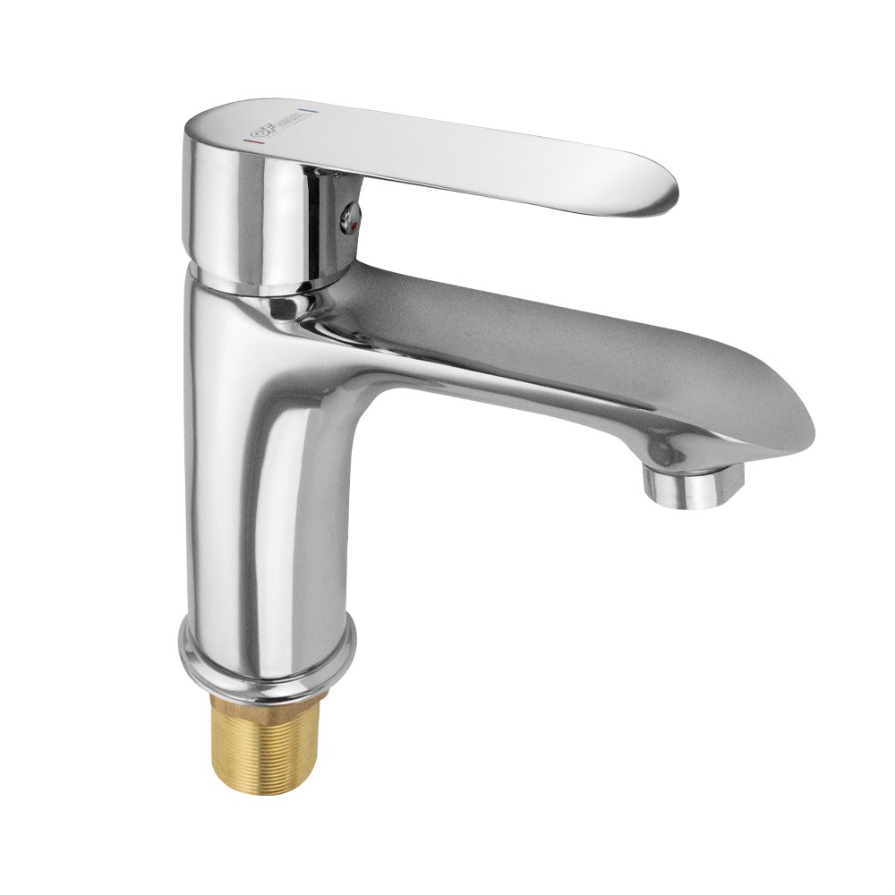 Смеситель для раковины, хромированный, с коротким изливом, литой корпус, литая ручка, шаровый. Материал изготовления — ЦАМ (цинк-алюминий-медь) + нержавеющая сталь. Крепление резьба - гайка, картридж d = 35 мм. Аэратор для экономии воды. Габаритные размеры: высота 160 мм, длина 170 мм, длина излива 125 мм, диаметр посадочного седла 40 мм, длина резьбы 50 мм, длина подводки 500 мм. Вес - 1,400 кг, объём - 0,00322 м3. В комплекте паспорт, корпус, подводка 1/2, крепеж, набор прокладок.