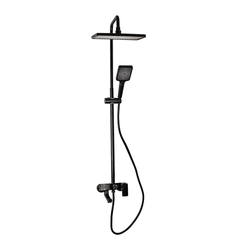 Смеситель + стойка душевая "тропический душ" с двумя квадратными лейками, из алюминия, цвет ЧЕРНЫЙ