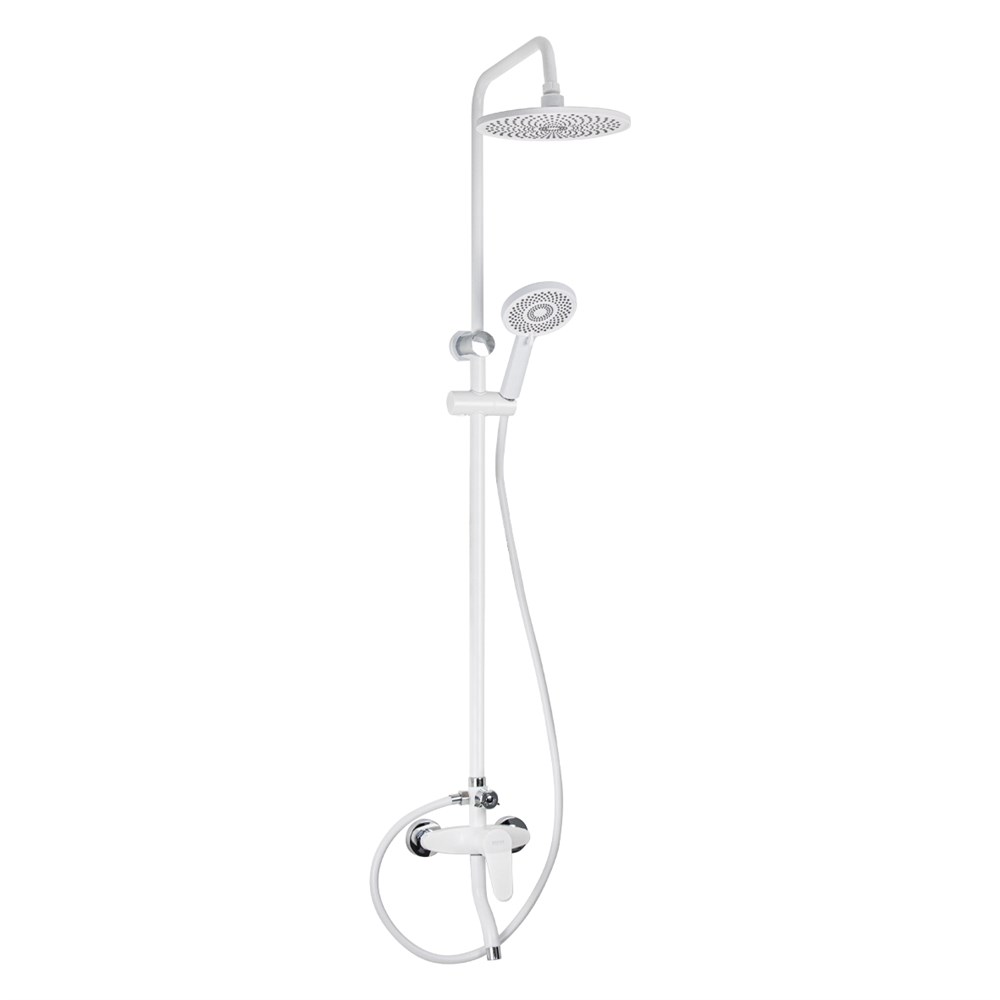 Смеситель + стойка душевая "тропический душ" с двумя лейками, корпус АБС пластик, цвет БЕЛЫЙ.