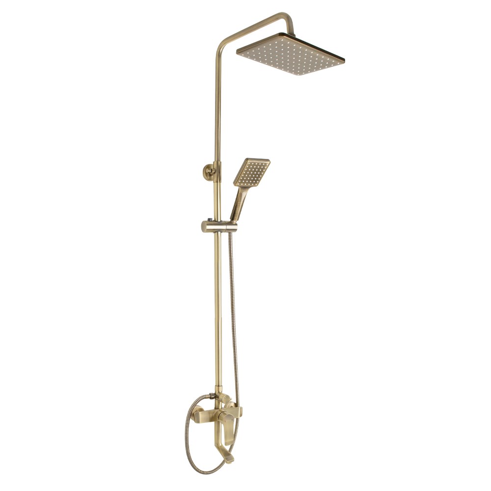 Смеситель + стойка душевая "тропический душ" с двумя лейками под состаренную БРОНЗУ