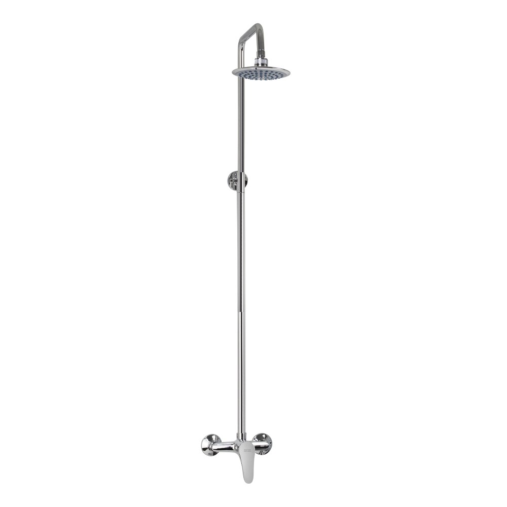 Смеситель хромированный в ванную / душевую комнату с жёстким высоким изливом, шаровый, с большой лейкой "тропический душ". Материал изготовления — ЦАМ (цинк-алюминий-медь). Картридж d = 40 мм, литая ручка, крепление к стене, чашки, гайки и эксцентрики из нержавеющей стали. Габаритные размеры: высота 1200 мм, ширина смесителя 150 мм, высота смесители 120 мм, длина излива верхнего душа 330 мм, рассеиватель из нержавеющей стали d = 150 мм. Вес - 1.300 кг, объём - 0,01200 м3. В комплекте корпус, паспорт, рассеиватель, излив - штанга, крепеж.